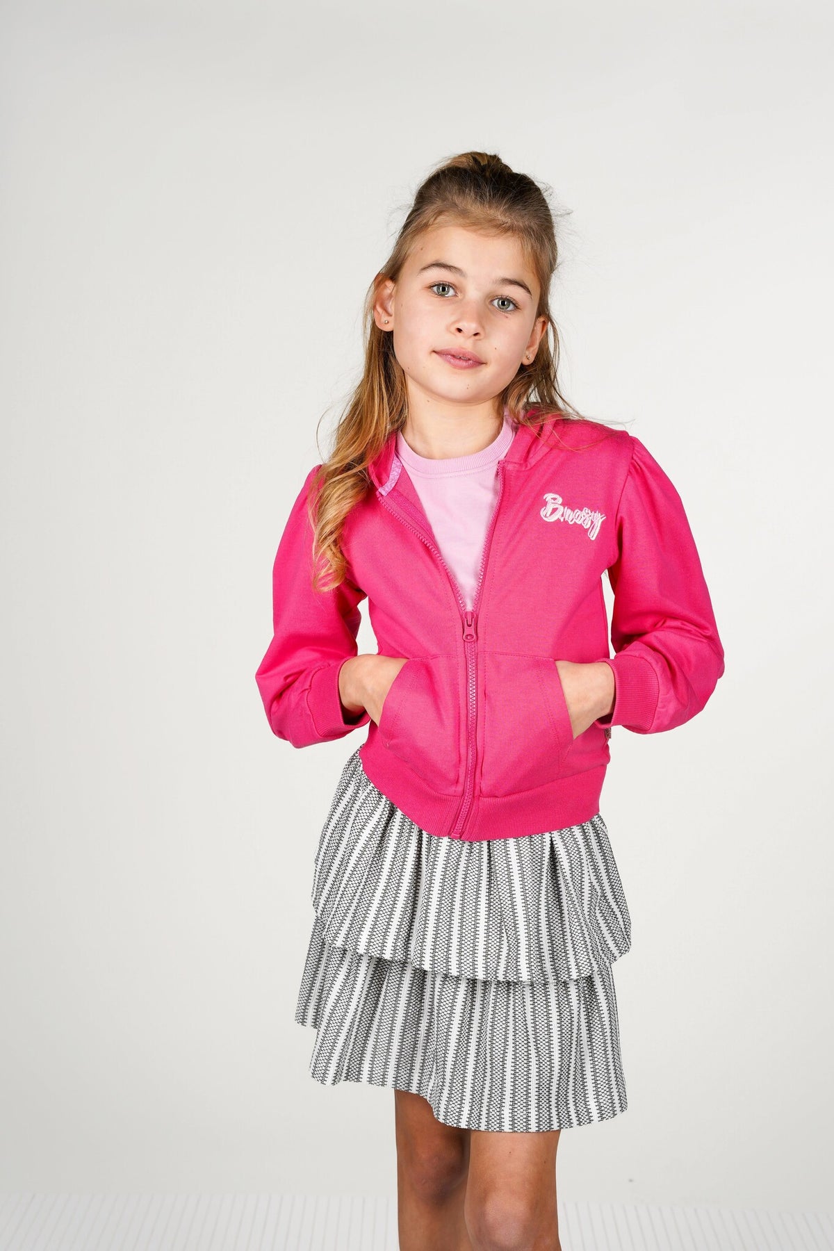 B.Nosy meisjes kids vest Coco hooded cardigan with zipper Fandango Pink