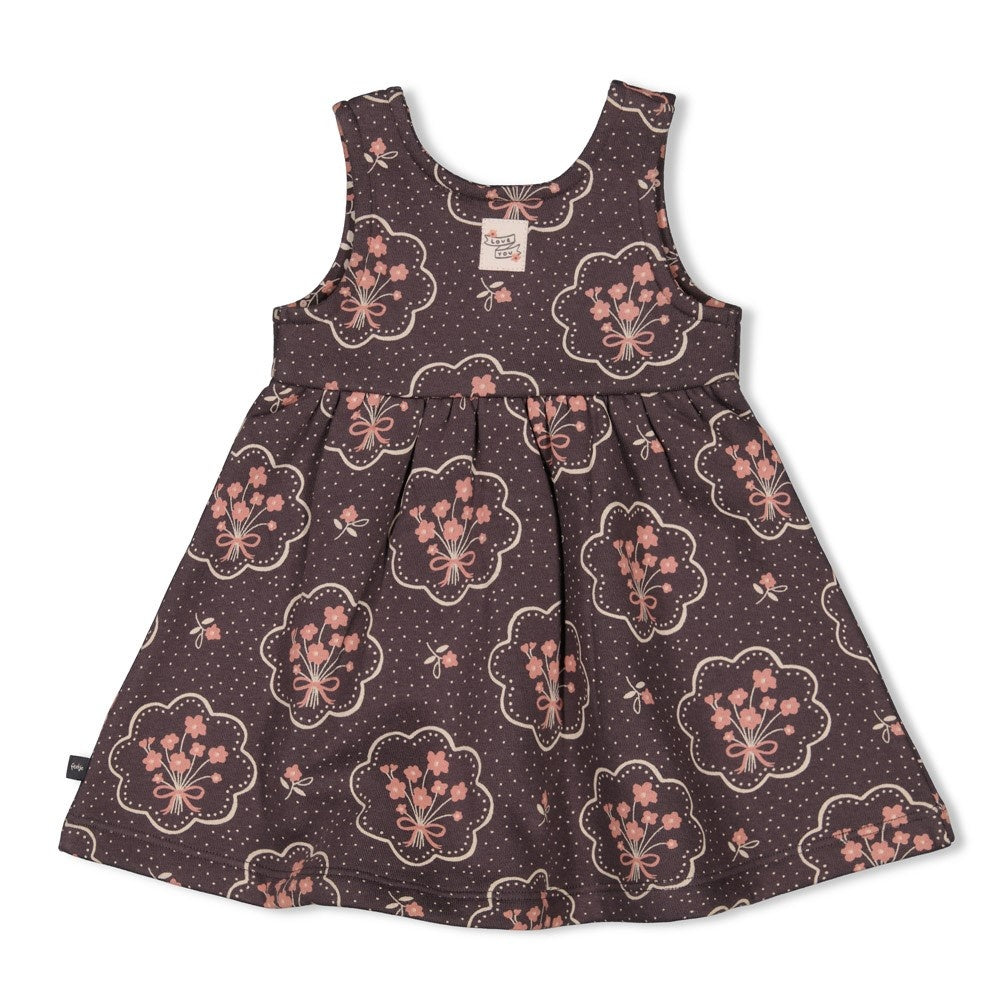 Feetje meisjes Jurk AOP Antraciet - Woodland Bloom