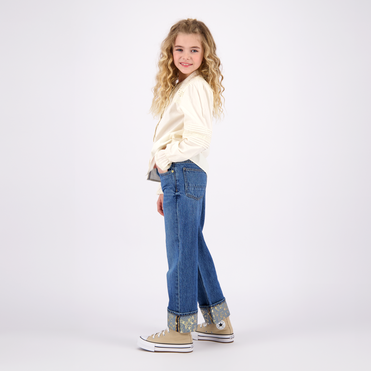 Vingino meisjes spijkerbroek Cato Folded Blue Vintage Wide leg
