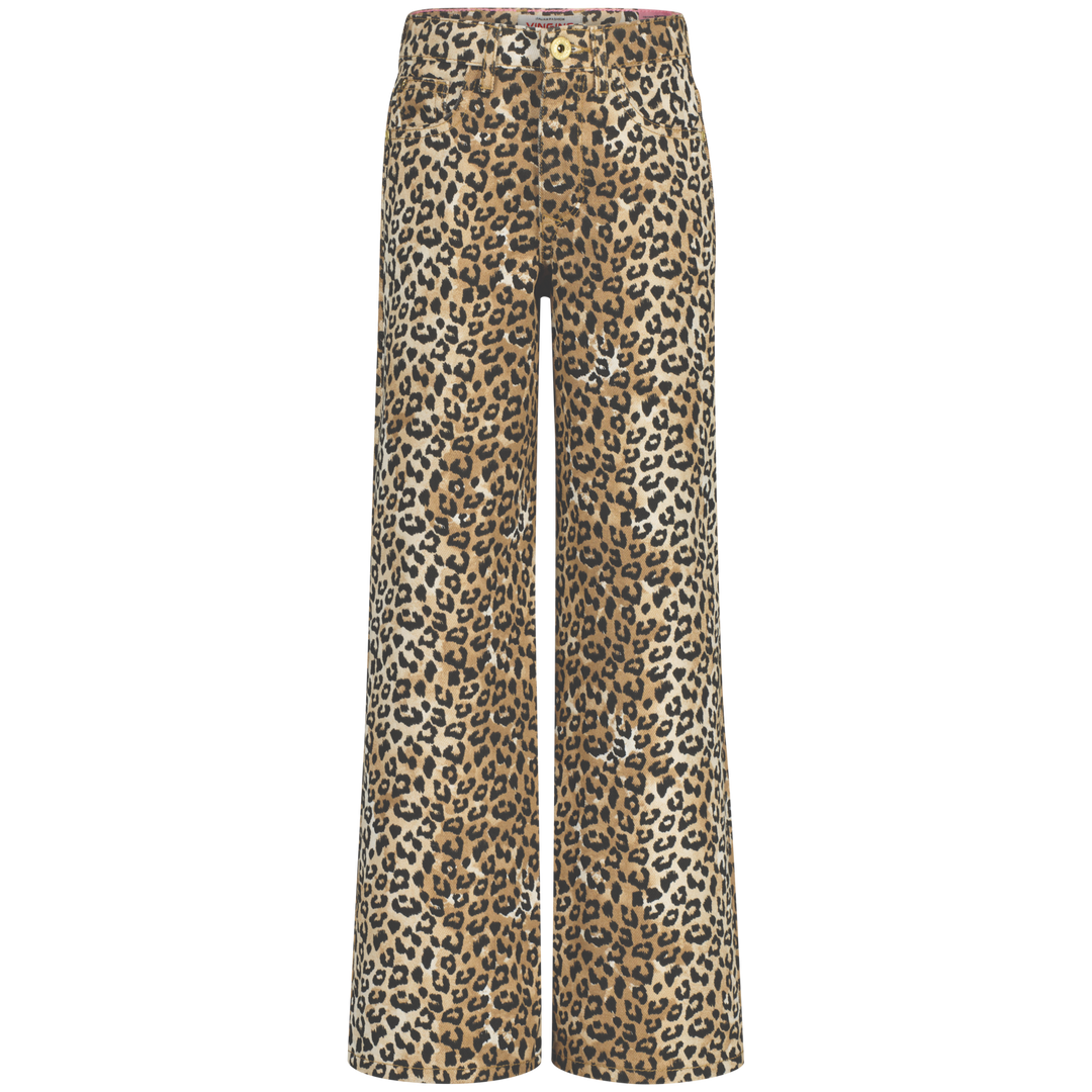Spijkerbroek Cassie leopard Sand Animal Extra wide leg