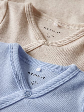 Name It baby unisex romper 2P LS WRAP SOLID Chambray Blue w/ Peyote Melange