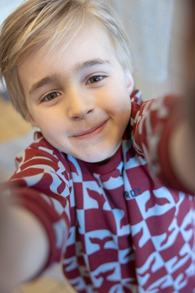Sturdy jongens Sweater AOP Bordeaux - Waves and Whales